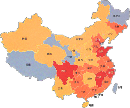 其中包括:上海、北京、山東、浙江、工西、四川等。