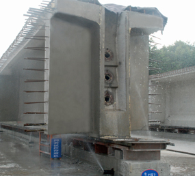 梁板養(yǎng)護(hù)采用智能噴淋養(yǎng)生的方法,就是由智能噴淋養(yǎng)生系統(tǒng)噴出的氣霧狀水能對梁板頂板和側(cè)壁進(jìn)行養(yǎng)護(hù)。其噴出的水霧均勻,可以達(dá)到全天候、全濕潤的養(yǎng)護(hù)淋質(zhì)量標(biāo)準(zhǔn),養(yǎng)護(hù)效果極為顯著。同時噴淋系統(tǒng)從供水到工作完畢,實現(xiàn)了過程全智能控制,大大降低了勞動強(qiáng)度,提高了勞動生產(chǎn)率。智能噴淋養(yǎng)護(hù)系統(tǒng)中將天然的,降水、清洗場地廢水、養(yǎng)護(hù)廢水收集并通過三級沉淀池澄清后循環(huán)利用,具有成本低,安裝、維修方便,節(jié)約用水等顯著優(yōu)點。
